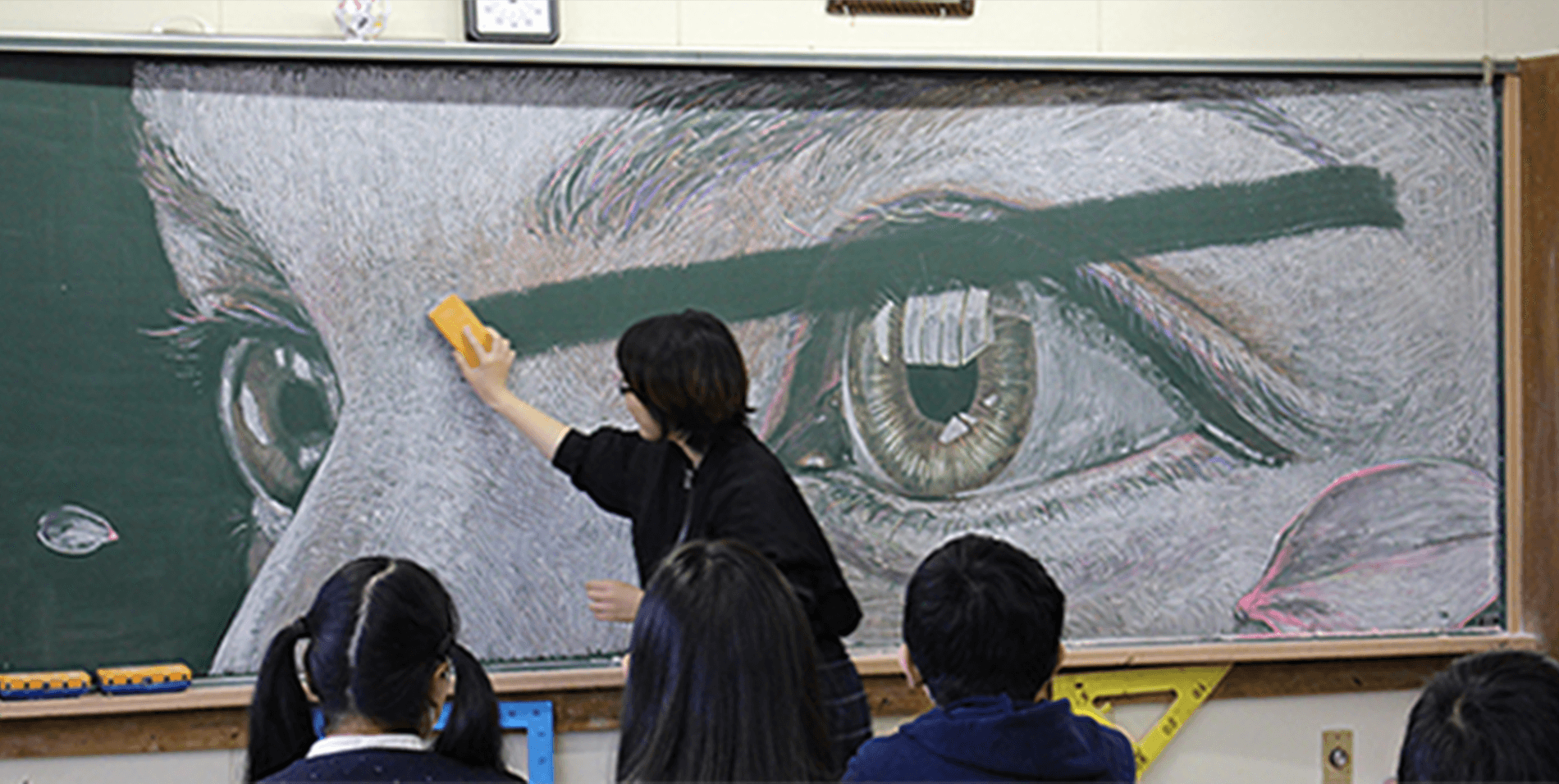 黒板アート作家として、学校の黒板に大きな絵を描く黒板アート作品を多数制作して話題に。画家としてもライブペイントや舞台装飾など多方面で活躍中。